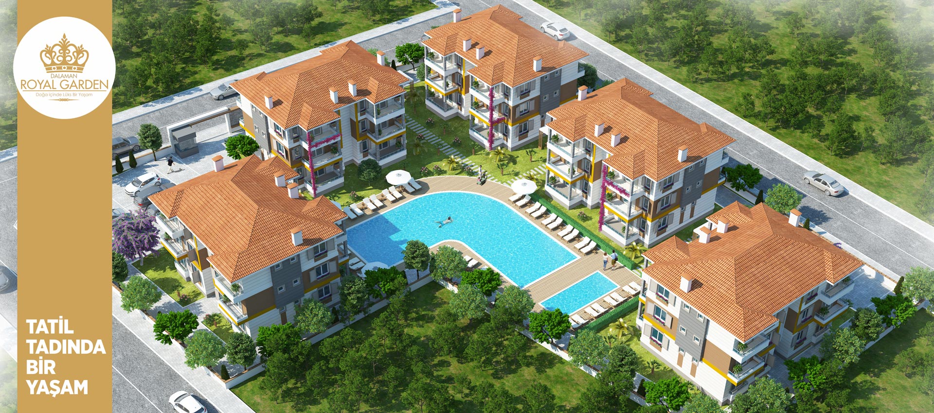Royal Garden Dalaman; Ege ile Akdeniz'i birleştiren özel konumu, temiz havası, güneşi, yeşili ve deniziyle rüya gibi bir yaşam sunuyor. Dalaman'da sağlıklı ve huzurlu yeni bir hayata yelken açın!